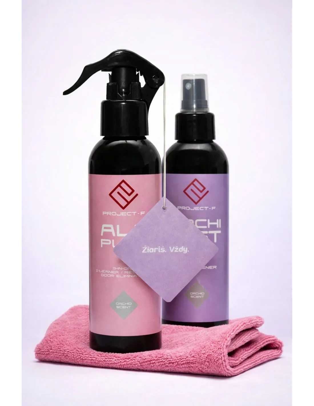 Balíček spája čistenie, svieži pocit a vôňu orchidey s jemným vanilkovým podtónom. Je vhodný pre každú, ktorá chce mať interiér upravený, príjemný na dotyk a voňavý bez komplikovaných detailingových postupov.